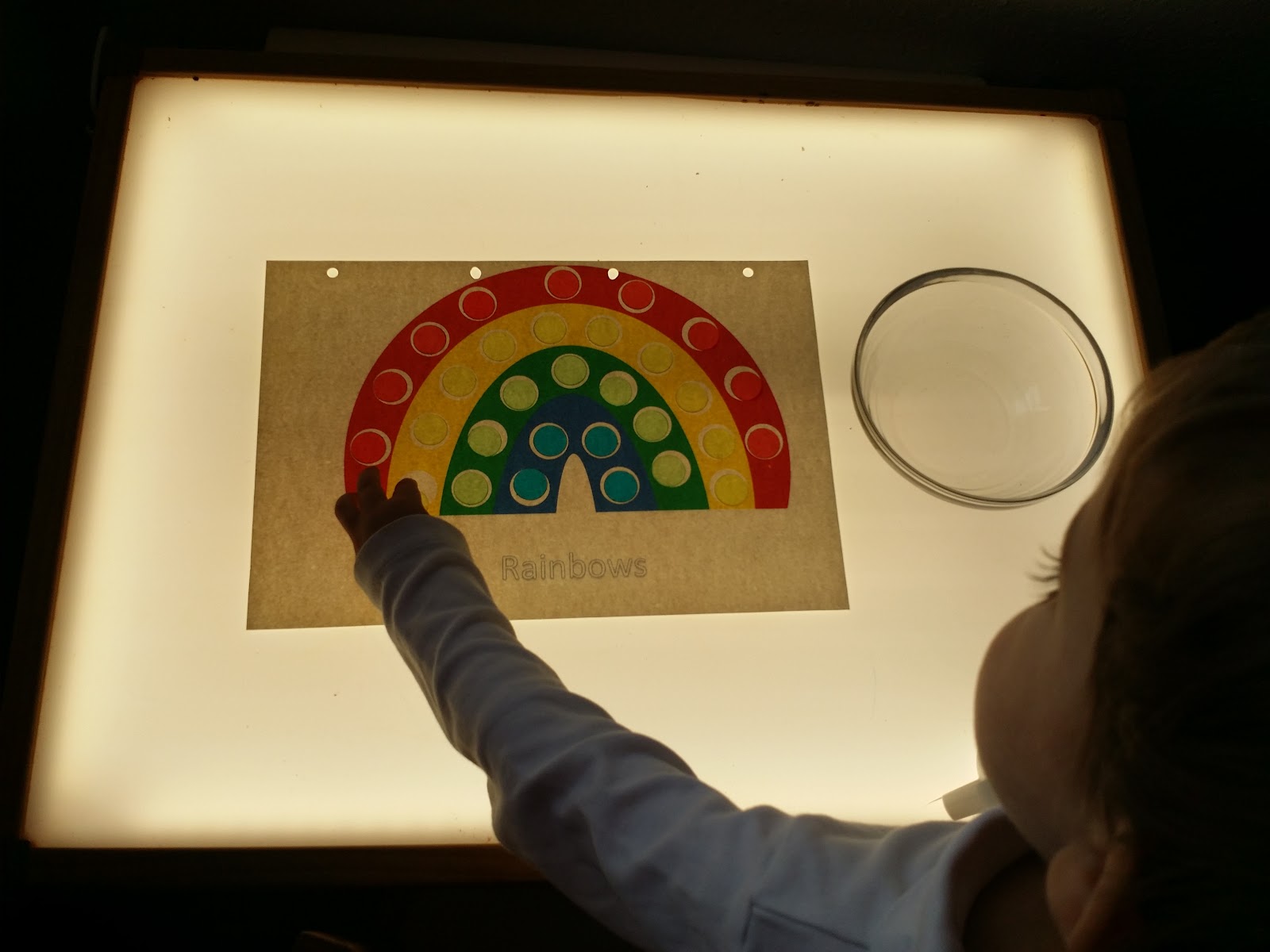 Esta plantilla la vió por primera vez, primero ponía fichas translúcidas, y después con la mesa apagada, pompones